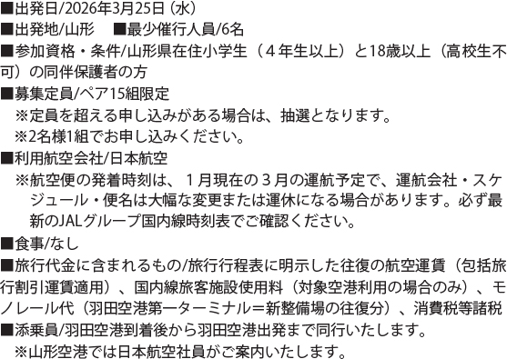 山形・羽田空港日帰り見学ツアー15組(30名様)限定